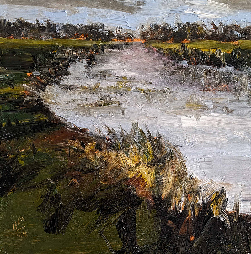 Geboren in Heilbronn/Sontheim und nach einer Ausbildung zur Druckvorlagenherstellerin zunächst viele Jahre als Mediengestalterin in der präzisen Welt von Agenturen und Verlagen tätig, vollzog Uta Masch nach ihrem Umzug nach Schleswig-Holstein eine bemerkenswerte Wende: Sie fand den Weg in die freie Malerei, die heute in ihrem Atelier in der Künstlerkolonie Carlshöhe in Eckernförde entsteht und in der sie die Landschaft, die sie von ihrem Wohnort Hohn aus erkundet, zu ihrem zentralen Thema gemacht hat.
