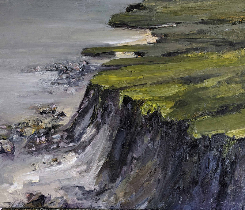 Was diese Künstlerin tut, ist nichts anderes als diese Ur-Bewegung des Lebens in künstlerisches Schaffen zu übersetzen: Sie atmet Natur ein – nicht als touristische Betrachtung, nicht als fotografisches Festhalten, sondern als leibliches Erfahren. Sie geht hinaus, wandert, segelt, und nimmt die Landschaft in sich auf: das Licht über dem Wasser, die Schwere nasser Erde, die Bewegung des Windes im Gras.