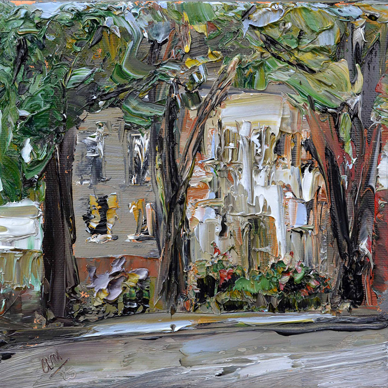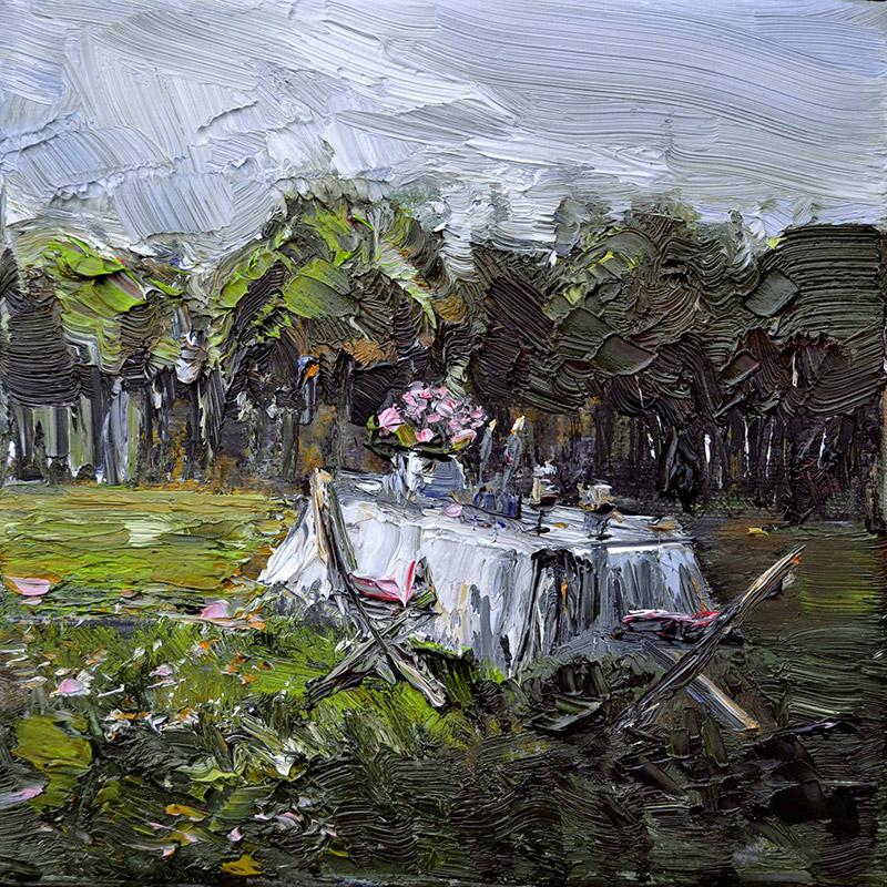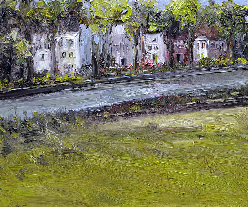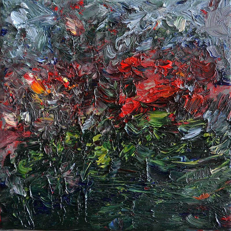 Was wir auf diesen Leinwänden sehen, sind verdichtete Augenblicke, atmosphärisch komprimiert, in Farbe und Gestus übersetzt. Das Pastose, das Kraftvolle der Malweise ist die physische Manifestation des Atemdrucks, mit dem die Erfahrung aus dem Körper der Künstlerin auf die Leinwand gepresst wird.