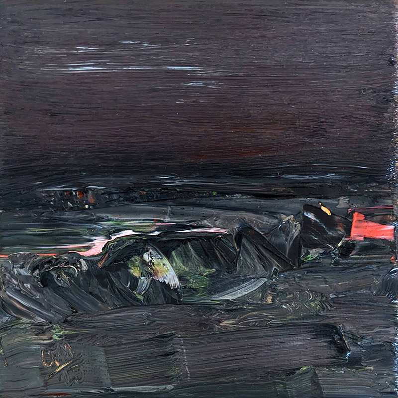 Die Landschaft setzt sich in ihr ab, lagert sich ein – als Gefühl, als Atmosphäre, nicht als visuelles Protokoll. Erst später, manchmal Stunden, manchmal Tage danach, entsteht der Drang, das Erlebte auszudrücken. Und dann muss es heraus – nicht als getreue Wiedergabe, sondern als Ausatmen des Erlebten. Nicht als mühevolle Rekonstruktion, sondern als Wiedererleben.
