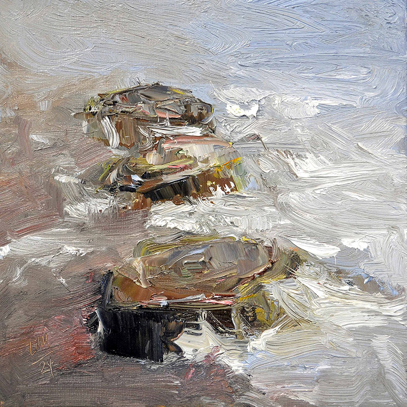 Der Moment des Malens ist nur die sichtbare Spitze eines langen inneren Prozesses. Aber wenn dieser Moment kommt, dann muss er ungeteilt sein. Ein Atemzug lässt sich nicht unterbrechen, nicht korrigieren, nicht wiederholen. Der erste Impuls trägt die Wahrhaftigkeit in sich. Je mehr man korrigiert, desto mehr schleichen sich Zweifel und kalkulierte Entscheidungen ein. Das Bild wird vielleicht „richtiger“, aber auch toter.